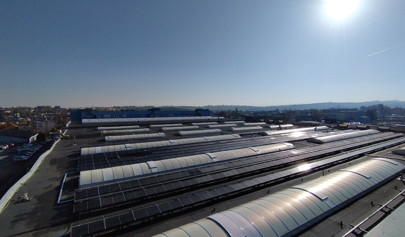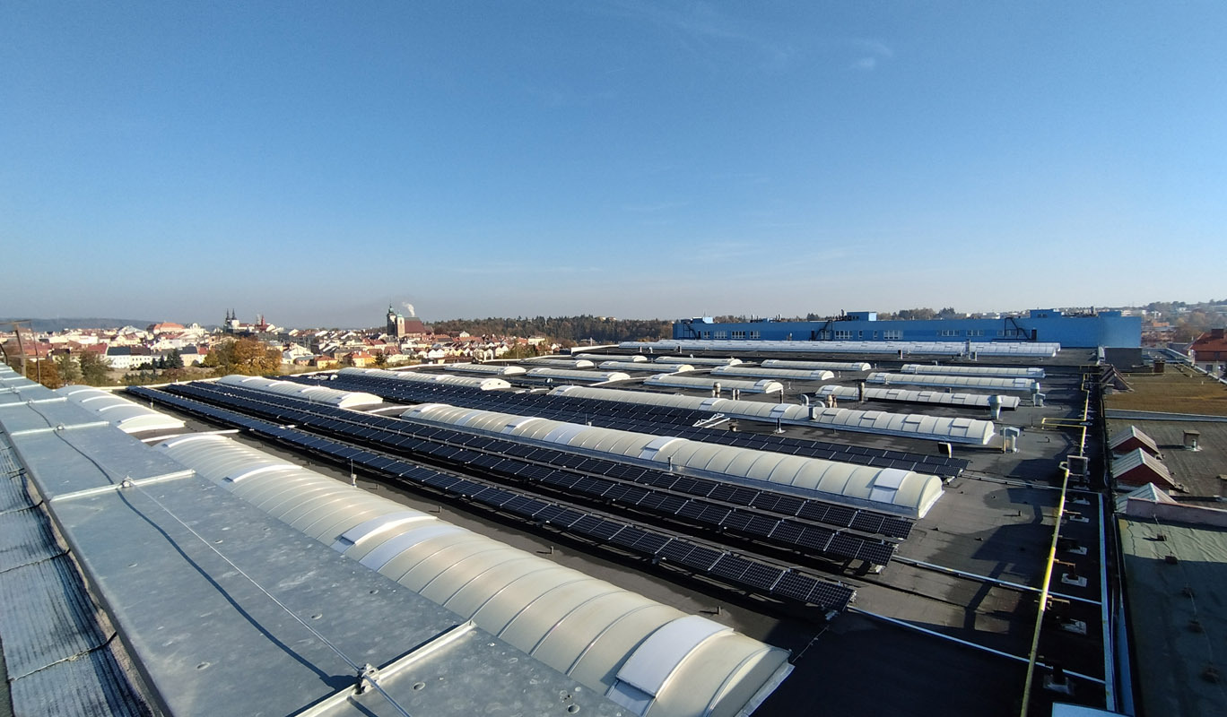 FVE o výkonu 299 kWp byla realizována na střeše průmyslového objektu v Jihlavě. Vzhledem k nevyhovující statice střechy byla zvolena konstrukce kotvená do patek. Systém využívá technologii SolarEdge s optimizéry pro efektivní řízení výroby.